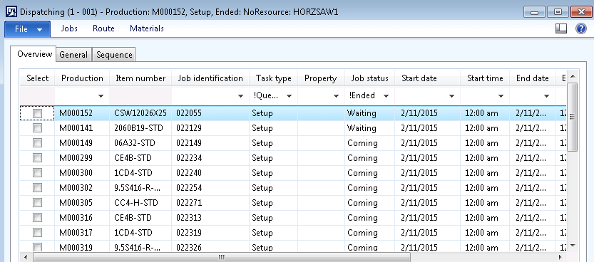 As far as manufacturing execution goes, in AX 2012 we now have full freedom to choose which scheduling method to use. (NOTE: The 2009 “Dispatch list” is still available in 2012 but pales in comparison to “Edit Job List” )