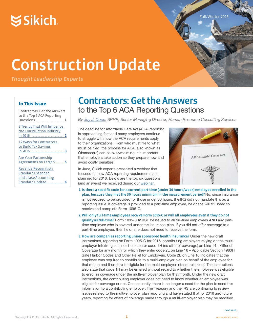Here are the two most current insights from the leadership at Sikich working with the construction industry.
