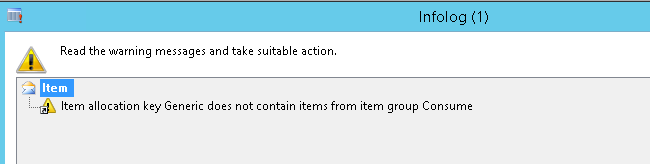 There could be a message when the items in the Allocation key are not in the item group you have chosen to put the forecast on. This message looks like this: