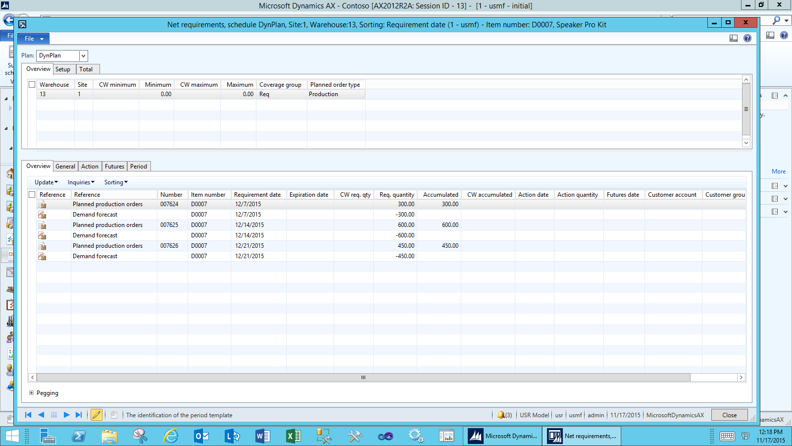 MRP creates the usual planned production orders. Because these items are never showing up in sales order lines, we need to use the second level forecast consumption mechanism that was added to AX 2012!